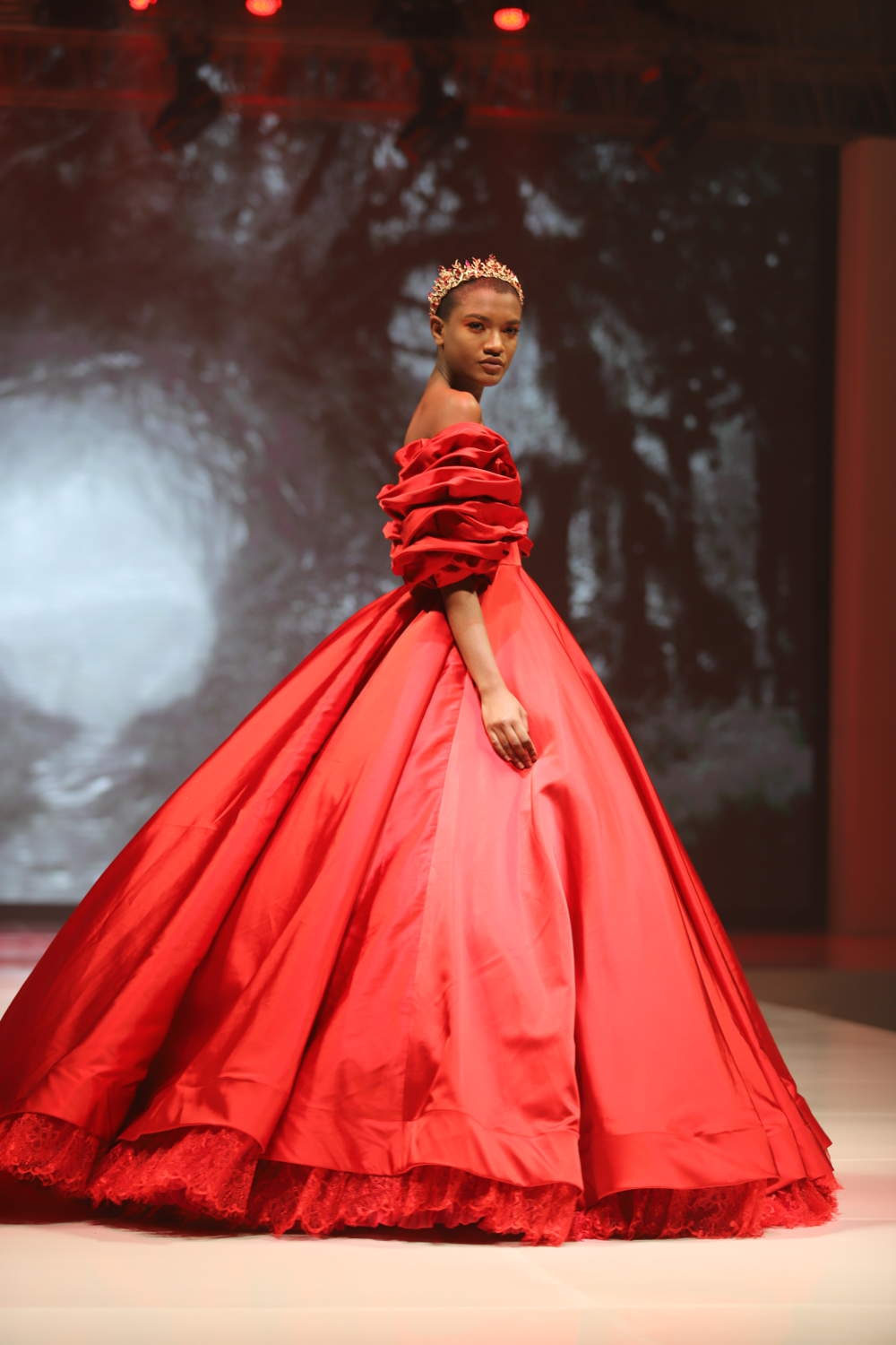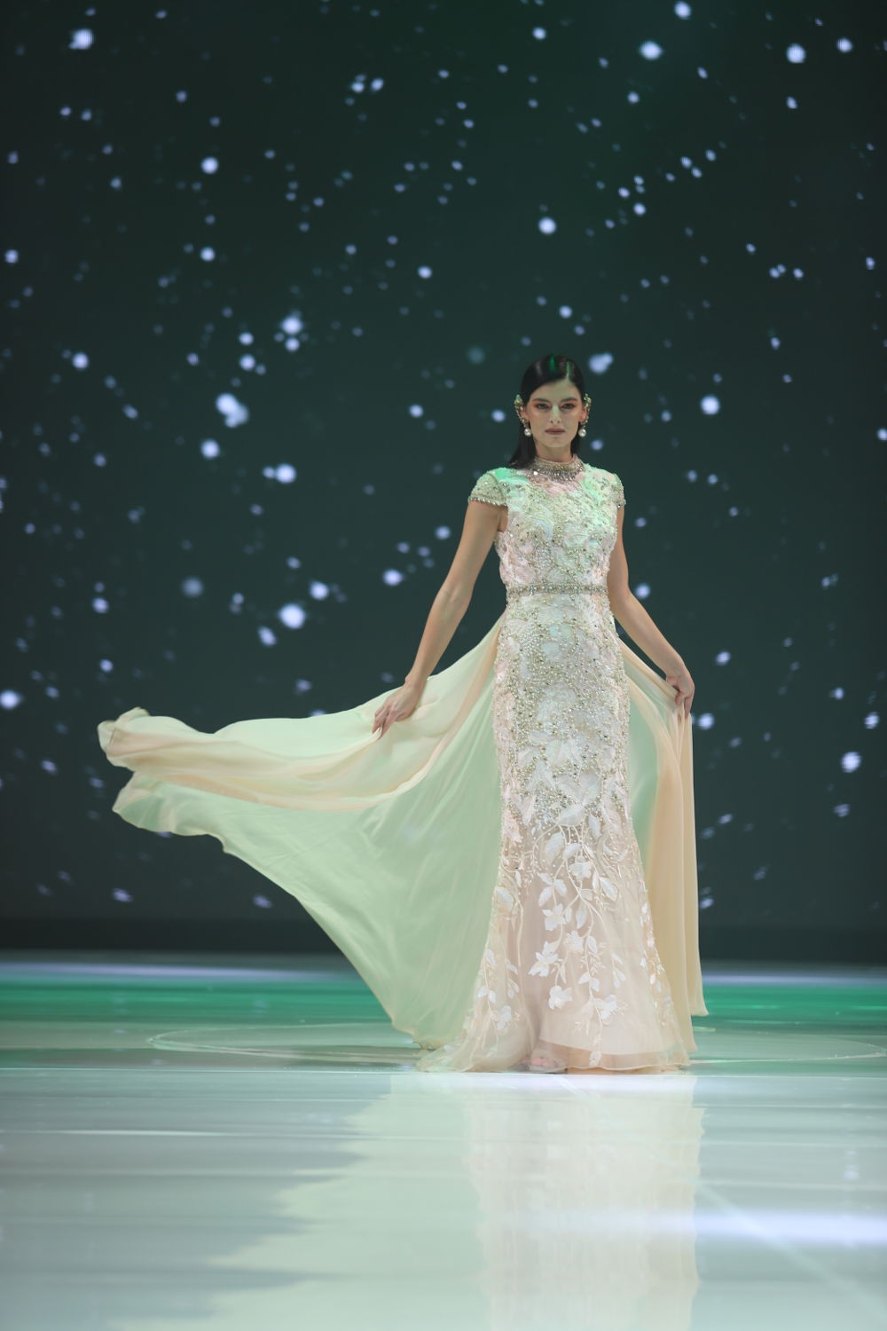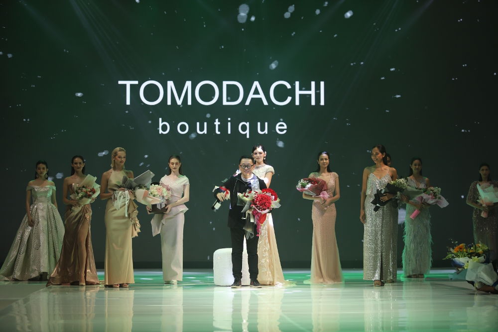Pada sequence pertama, butik ini menampilkan koleksi cocktail dress bernuansa hitam, putih, dan merah. Di sequence kedua, Tomodachi Boutique hadir dengan evening gown yang bernuansa silver, mint, dan aqua blue dengan siluet berbagai macam mulai dari column dress, mermaid dress, A-line dress, sampai dengan ball gown. Di sequence terakhir, butik ini menampilkan koleksi evening gown bernuansa keemasan, rose gold, dan champagne.