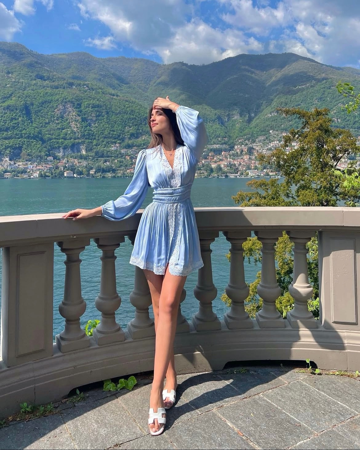 Berani bermain warna tak selalu berarti tampil mencolok. Alexandra memperlihatkan bagaimana warna-warna vibrant bisa dibawa dengan penuh keanggunan. Dalam balutan dress v-neck dengan aksen lace dan kombinasi warna cerah, ia tampil percaya diri dan effortless. Look ini sangat cocok untuk suasana siang hari di pesisir atau pesta musim panas, dengan nuansa yang fun tapi tetap mencerminkan selera yang tinggi dan padu padan yang matang.