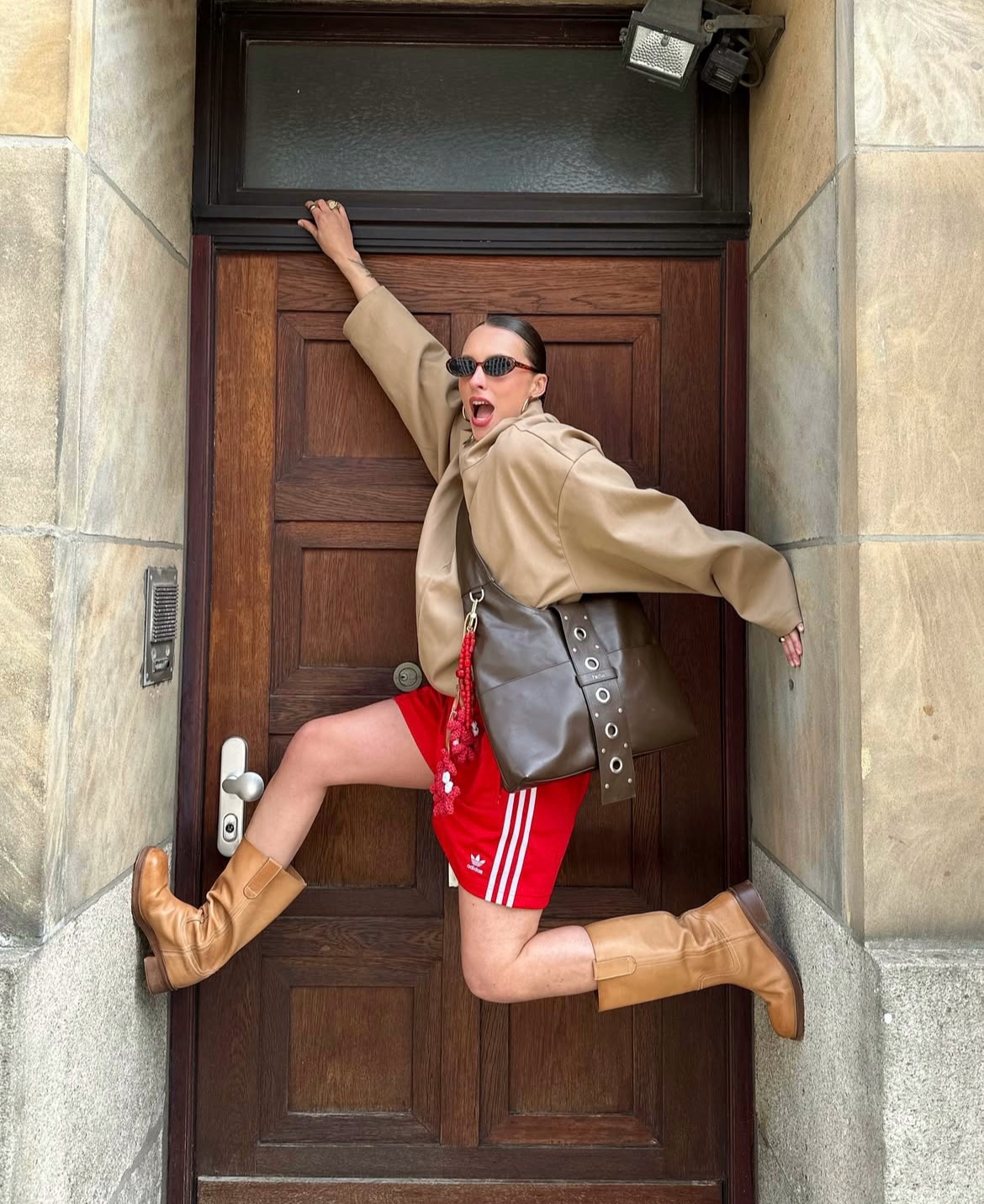 Bayangkan celana track dari Adidas yang dipadankan dengan blazer oversized berstruktur maskulin, menciptakan siluet yang santai namun tetap tegas. Atau jaket sporty berbahan tech-fabric yang dipasangkan dengan celana tailored berpotongan lurus, menghasilkan gaya kontemporer yang cocok untuk brunch mewah maupun meeting spontan. Gaya ini tidak lagi soal ‘berpakaian nyaman’ semata, melainkan juga sebagai bentuk baru dari power dressing.