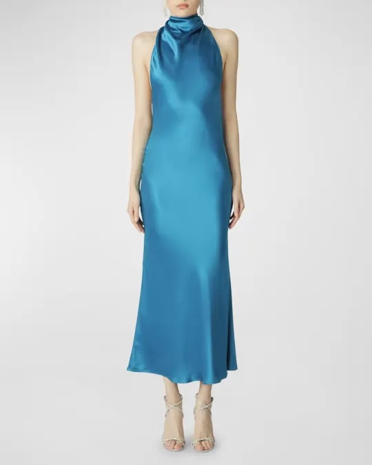 Untuk tampilan yang lebih segar dan modern, halter neck midi dress bisa jadi pilihan tepat. Potongan leher halter memberikan aksen stylish yang mempertegas bahu dan leher, sementara panjang midi membuatnya tetap sopan dan nyaman untuk bergerak. Bahan satin polos menambah kesan sleek dan rapi dengan nuansa minimalis elegan. Bridesmaid akan tampil memukau tanpa mengorbankan kenyamanan.