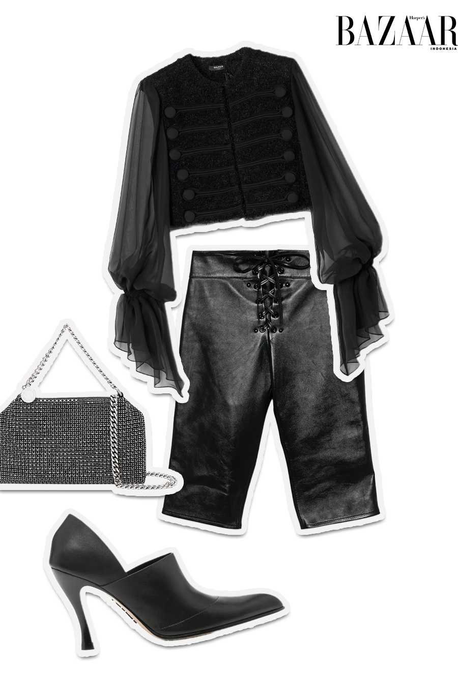 Siap mencuri perhatian dengan cara yang tepat? Padukan celana capri berbahan kulit dengan atasan bohemian serba hitam dan biarkan tasmu menjadi pusat perhatian. Tampilan ini menyuarakan kepercayaan diri dan gaya edgy yang sedang menjadi sorotan. Cocok dikenakan saat menghadiri acara formal, bersantai di bar, atau menikmati malam di klub. Inilah gaya malam yang mencerminkan kekuatan feminin dengan sentuhan fashion-forward. Pada tahun ini, menjadi berani adalah gaya baru.