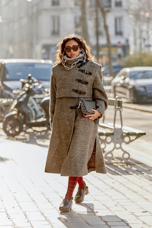 Tampilan bergaya juxtapose tidak akan terlihat berlebihan apabila Anda tidak menggunakan jenis aksesori yang tepat. Padukan kaus kaki dengan sepatu hak beledu sebagai pelengkap aksi yang sepadan.