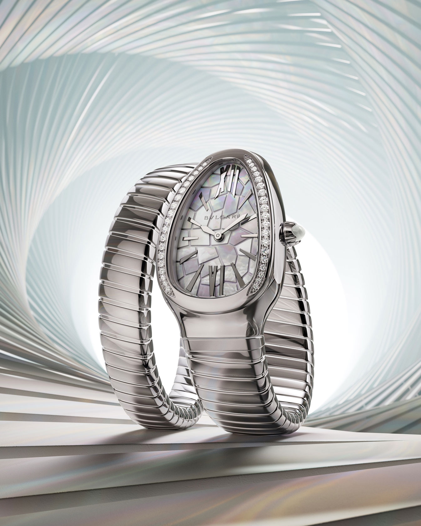 Musim dingin identik dengan ketenangan dan keindahan salju yang menyelimuti. Edisi musim dingin Serpenti Tubogas menampilkan marquetry dari mutiara putih yang berkilauan, memberikan kesan elegan dan menawan, layaknya salju yang berkilauan di bawah sinar matahari. Casing dan gelang baja yang berkilau melengkapi keindahan jam tangan ini.