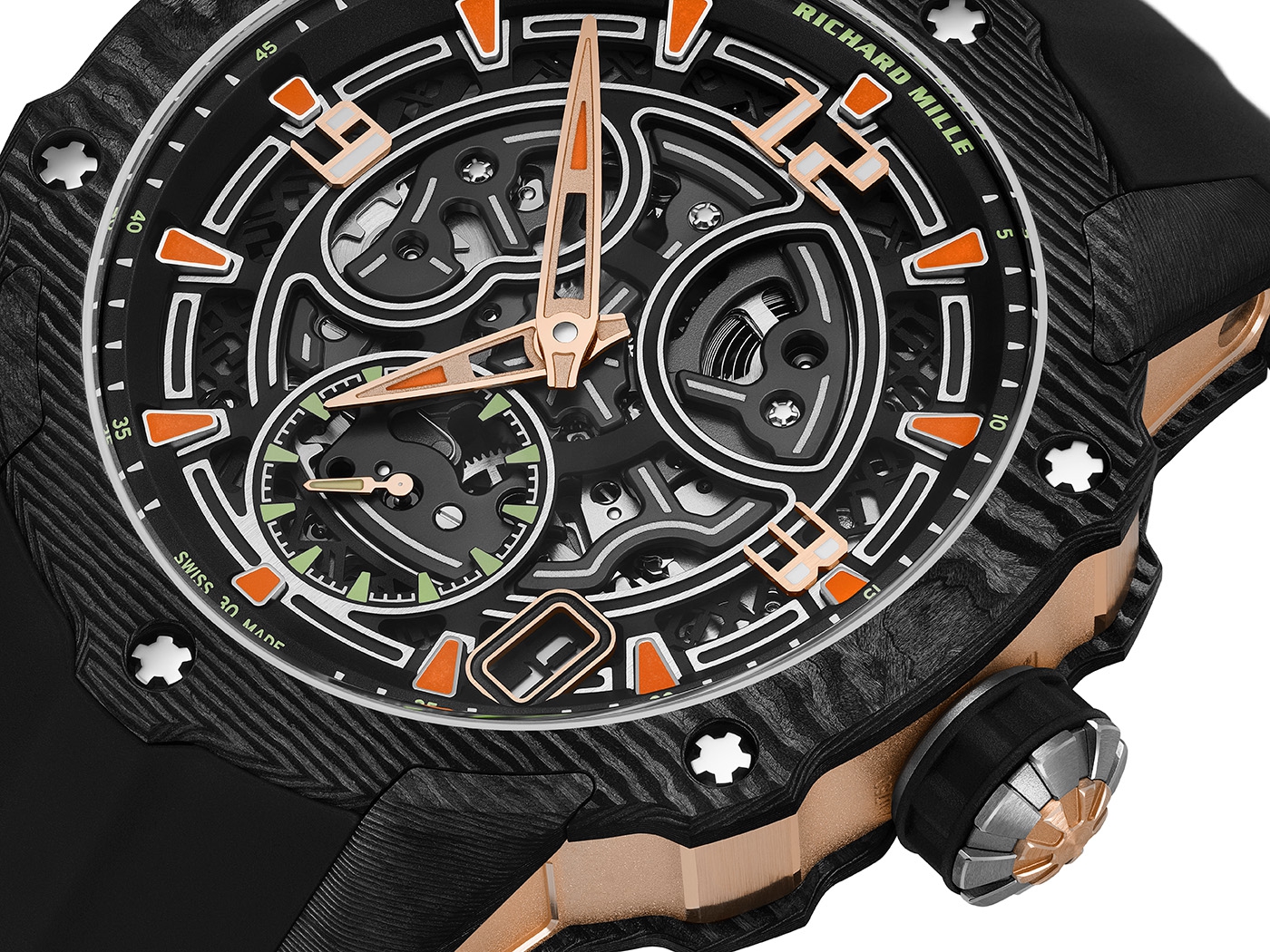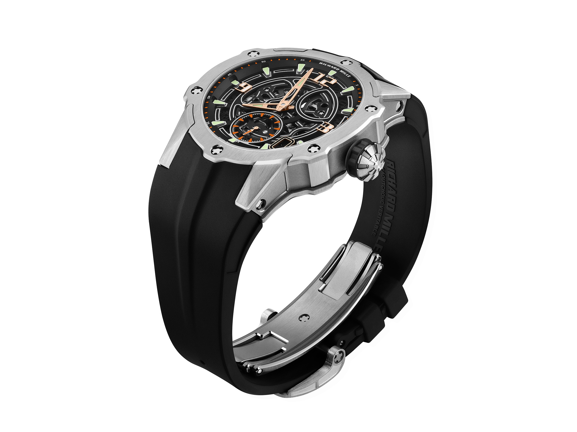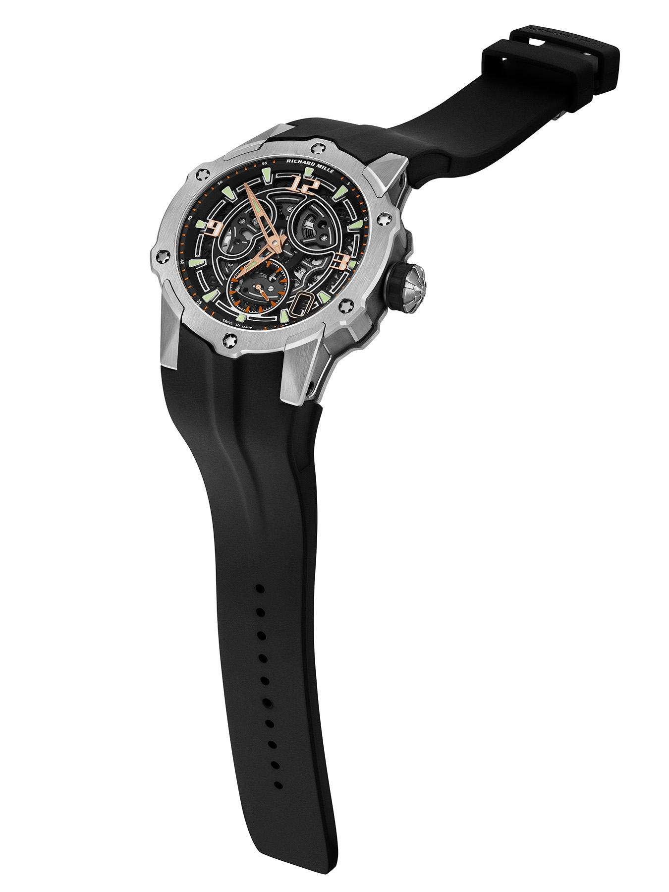 Jam ini tersedia dalam dua versi: full titanium, atau Carbon TPT® dengan caseband dari emas merah 5N. Keduanya menunjukkan bahwa Richard Mille menjunjung tinggi teknologi canggih dan juga rasa hormat terhadap bahan, pengerjaan tangan, dan tentunya, pemakainya.