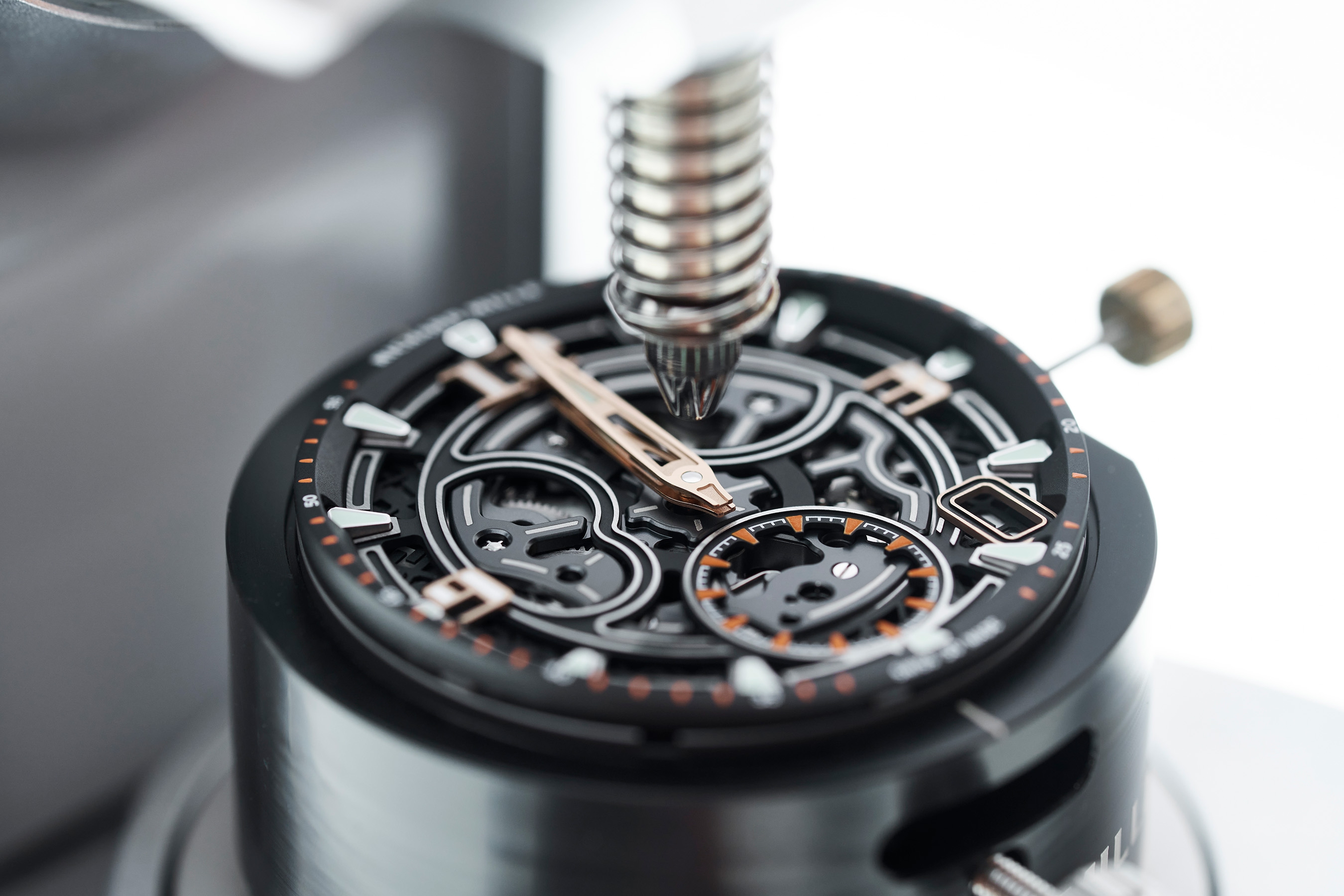 Apa yang membuat jam ini istimewa? Mari kita mulai dari jantungnya. Kaliber RMXP3 adalah mesin otomatis skeleton terbaru yang begitu tipis, hanya 3,28 mm. Tipis, tapi bukan berarti ringkih. Justru di balik kerampingannya tersembunyi kekuatan, rotor mikro berbahan platinum yang diposisikan sedikit menyamping, berputar dua arah, dan ditopang bantalan keramik. Sebuah sistem yang tidak hanya efisien, tapi juga dirancang untuk awet dan presisi.