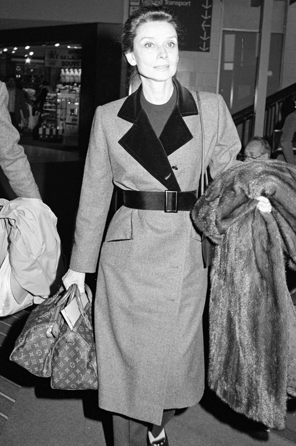 Tas Louis Vuitton sering menjadi pilihan utama sebagai tas kabin di bandara bagi para selebriti, namun penampilannya terasa sangat elegan saat Audrey Hepburn membawanya pada tahun 1984.