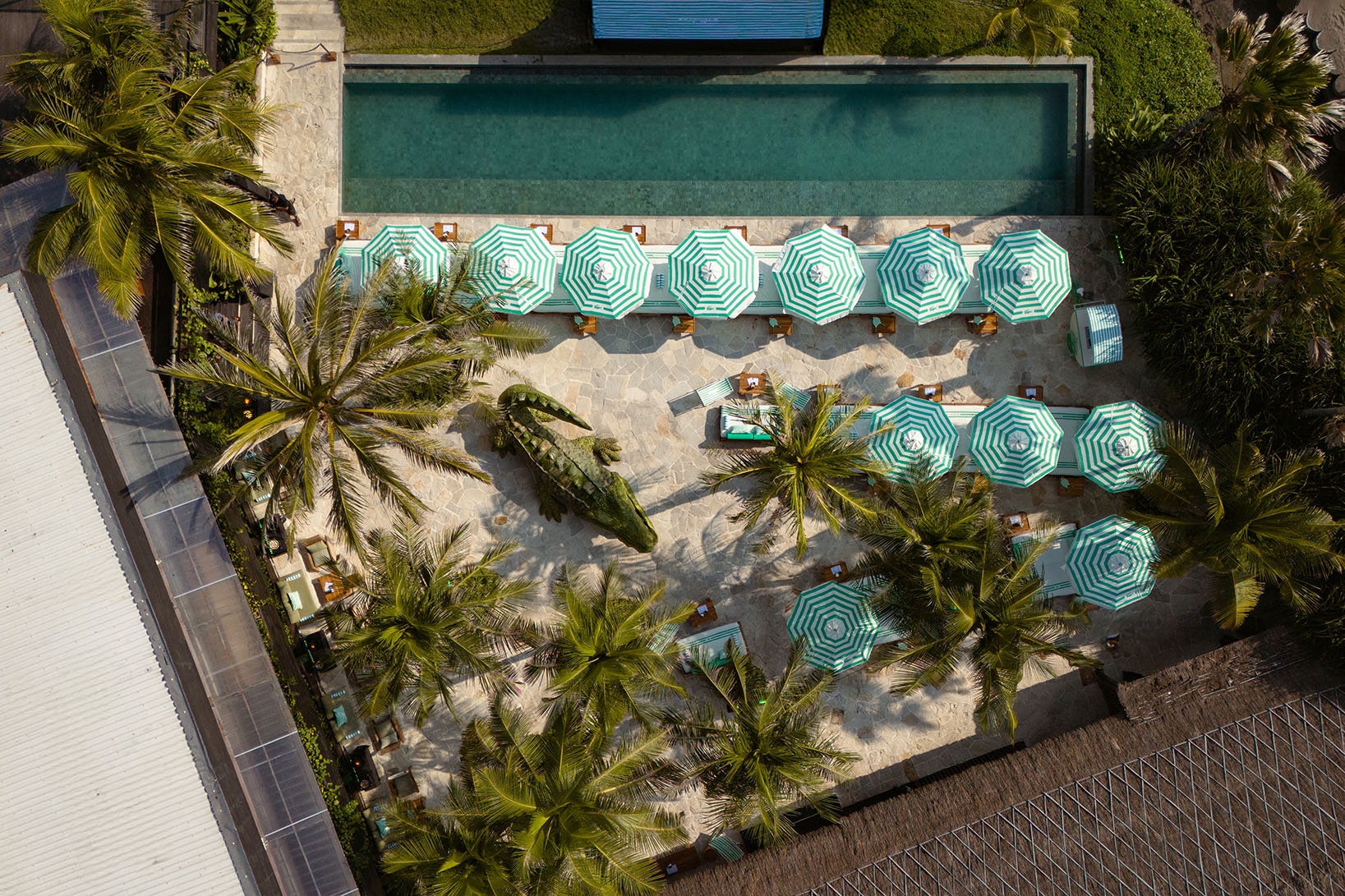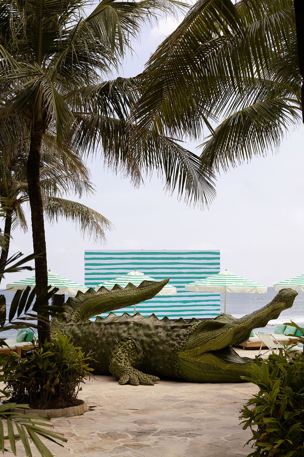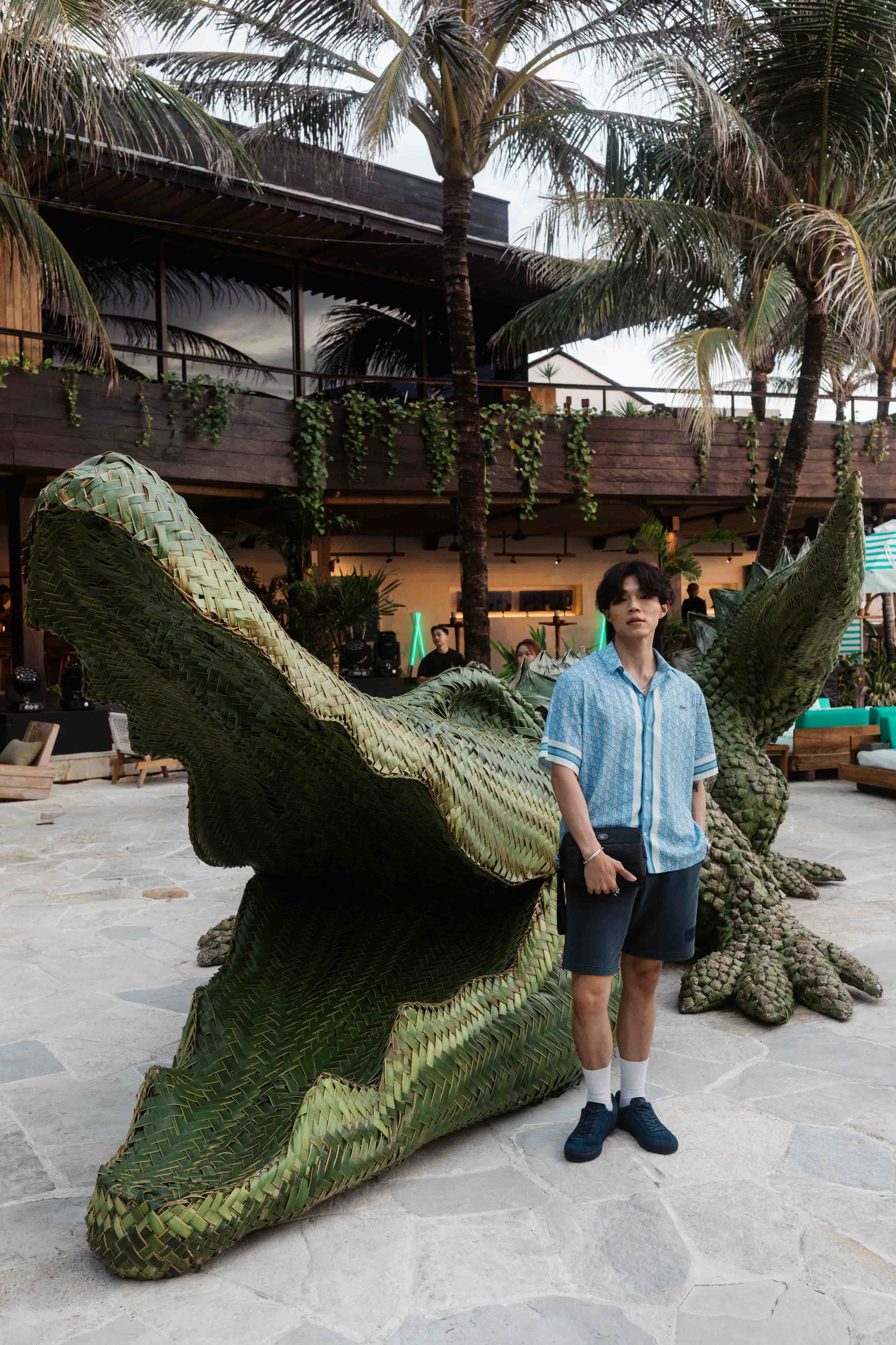 Salah satu highlight yang paling mencuri perhatian adalah instalasi buaya raksasa sepanjang enam meter yang dibuat dari daun-daun. Ini merupakan kreasi dari Make a Scene, sebuah studio dekorator yang memadukan desain dengan teknik "anyaman" menggunakan daun-daun . Karya tersebut seolah menjadi simbol kuat dari pertemuan budaya: logo ikonis Lacoste yang berkolaborasi bersama sentuhan alam dan kerajinan tangan tradisional Bali.
