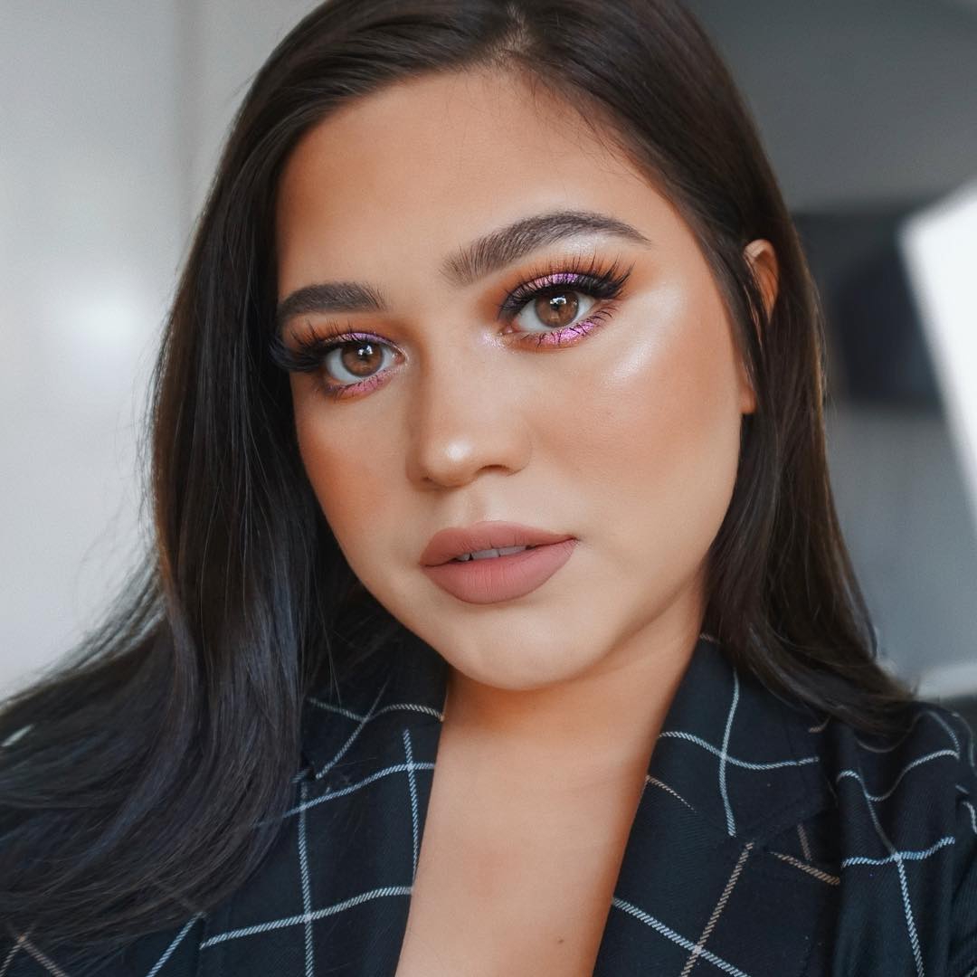 Melalui akun Instagramnya, @thelipstickmafiaaa, beauty influencer satu ini rutin menyajikan tampilan lipstik dengan beragam warna dan tekstur. Namun riasannya di bawah ini terasa berbeda dan dapat Anda jadikan inspirasi. Ia membiarkan bibirnya tampak natural dan memilih bermain warna pada matanya. Warna peach, ungu dan winged-eyeliner rupanya dapat menjadi perpaduan yang menarik jika Anda bosan dengan smoky-eyes biasa atau palet-palet aman. Lengkapi dengan bronzer dan highlighter pada pipi untuk mempertegas fitur wajah.