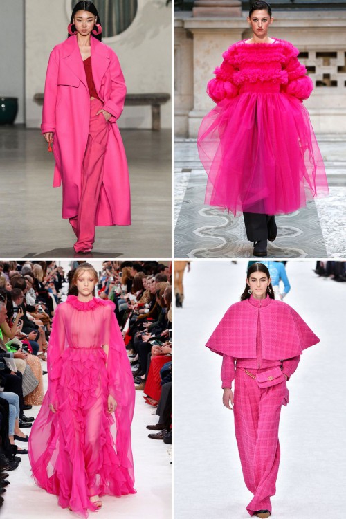 Semua hal mungkin memang sudah menjadi berwarna merah muda, namun ada banyak ruang untuk pemilihan warna terang di lemari kita. Hidupkan palet yang biasa Anda kenakan yang terdiri dari cokelat, hitam dan abu-abu dengan sedikit percikan shocking pink yang akan menyegarkan Anda di suasana dingin musim gugur.