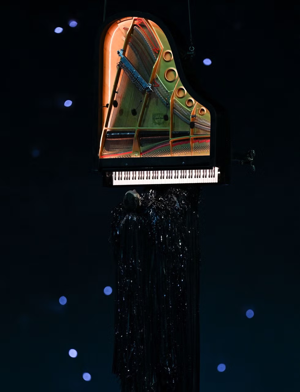 Sebuah piano muncul dari bawah panggung, menggantung secara vertikal sementara Alain Roche memainkan alat musik tersebut di udara. Di saat yang sama, penyanyi Prancis Benjamin Bernheim bergabung dengan para akrobat di cincin untuk membawakan lagu "Hymn to Apollo" dengan penuh emosi.