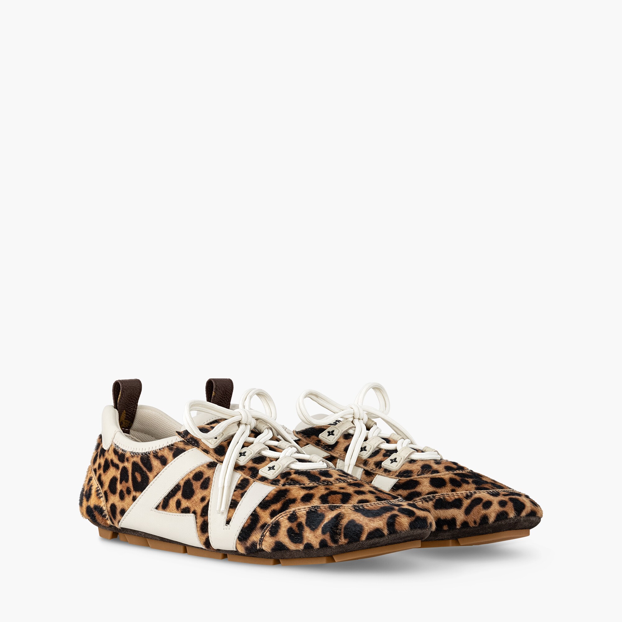 Miu Miu menyuguhkan sneakers bermotif leopard yang playful dan penuh semangat muda. Desainnya memadukan elemen sporty dengan aksen feminin khas rumah mode ini, menciptakan sepatu yang nyaman sekaligus fashion-forward. Motif leopard tampil mencolok tanpa terlihat norak, menjadikannya andalan untuk tampilan street style yang penuh karakter. Dilengkapi dengan detail seperti logo bold dan sol yang ringan, sneakers ini cocok dipadukan dengan jeans, rok, maupun dress untuk tampilan kasual yang tetap standout.