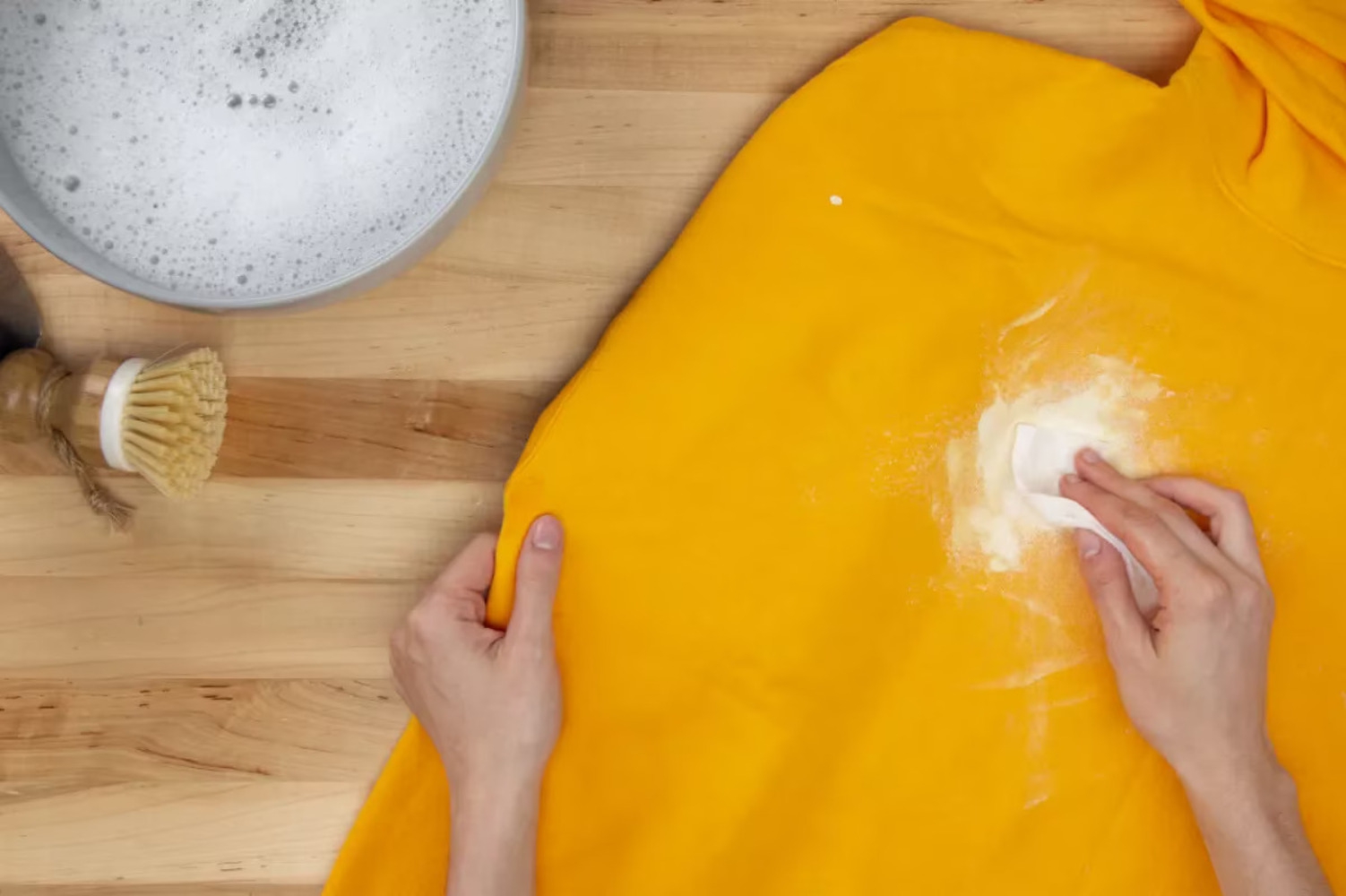Sebelum mencoba metode pembersihan apa pun, selalu baca label perawatan pada pakaian. Bahan-bahan halus seperti sutra, satin, atau wol biasanya membutuhkan penanganan profesional melalui layanan dry clean. Namun, untuk kain yang lebih kuat seperti katun, poliester, atau denim, Anda bisa mencoba mengatasi noda di rumah. Uji terlebih dahulu cairan pembersih pada bagian tersembunyi pakaian untuk memastikan tidak merusak warna atau serat kain.