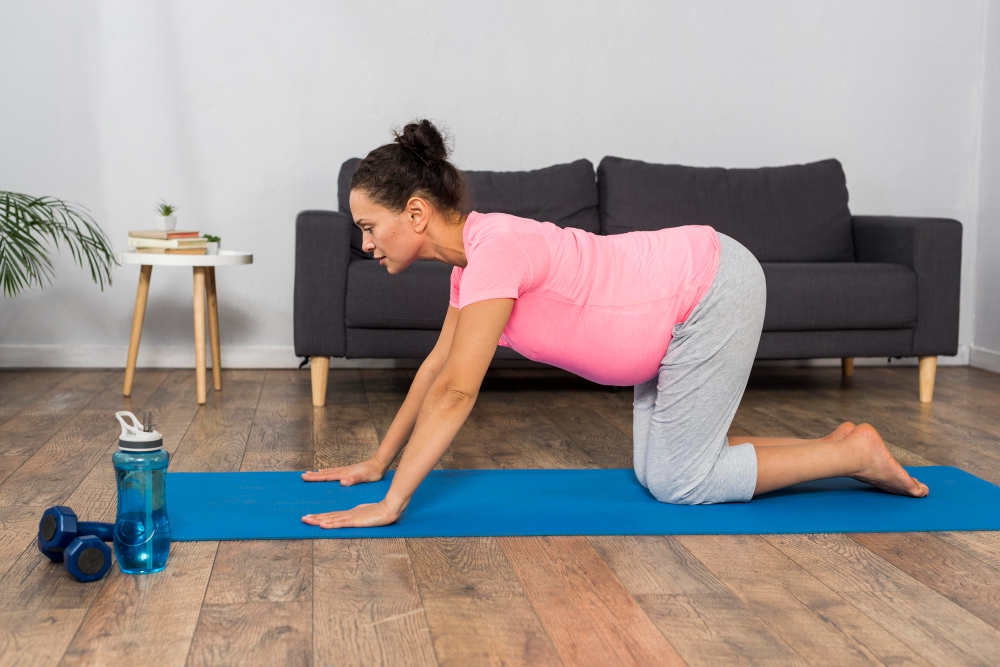 - Hindari pose tertentu: hindari pose yang menekan perut, berbaring telentang terlalu lama (terutama setelah trimester pertama), atau gerakan membalik tubuh (inversion).