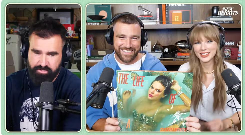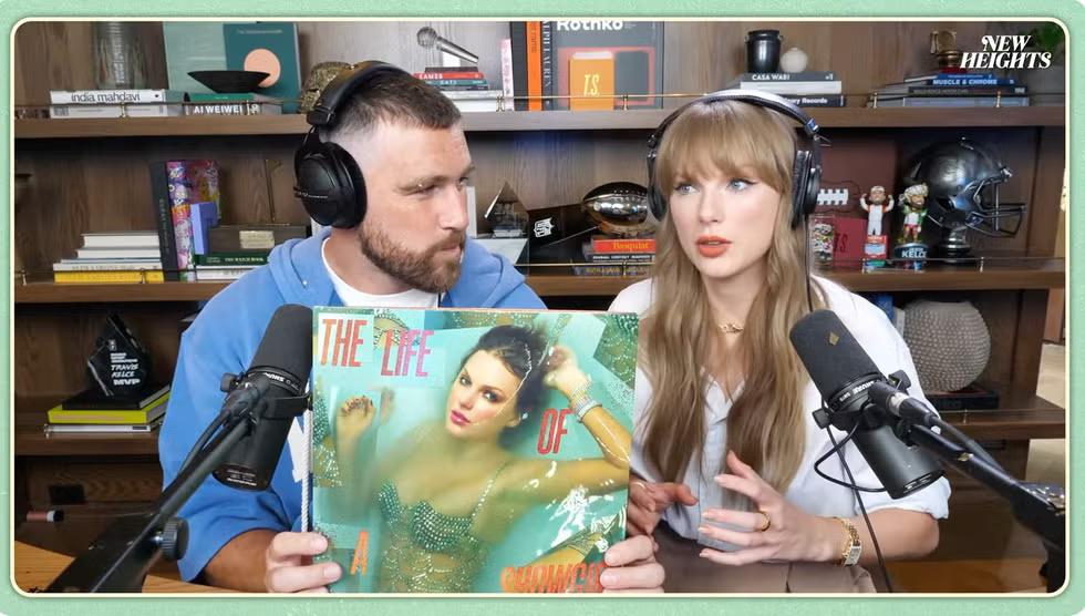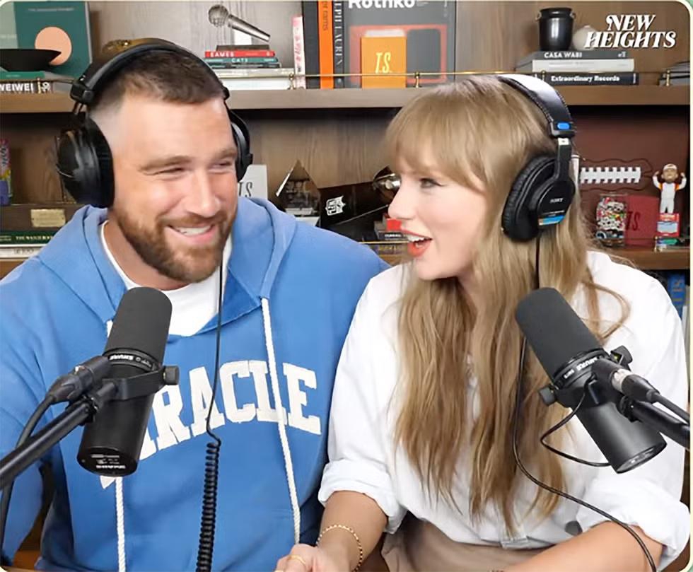 “Podcast ini membuatku dapat pacar... sejak Travis memutuskan menggunakannya sebagai aplikasi kencan pribadinya sekitar dua tahun lalu,” canda Taylor, merujuk pada momen ketika Travis mengaku di New Heights bahwa ia menonton konser Eras Tour dan membuatkan Taylor gelang persahabatan dengan nomor teleponnya, tetapi Taylor menolak menemuinya. (Taylor meluruskan bahwa Travis tidak benar-benar berusaha menghubungi timnya.)