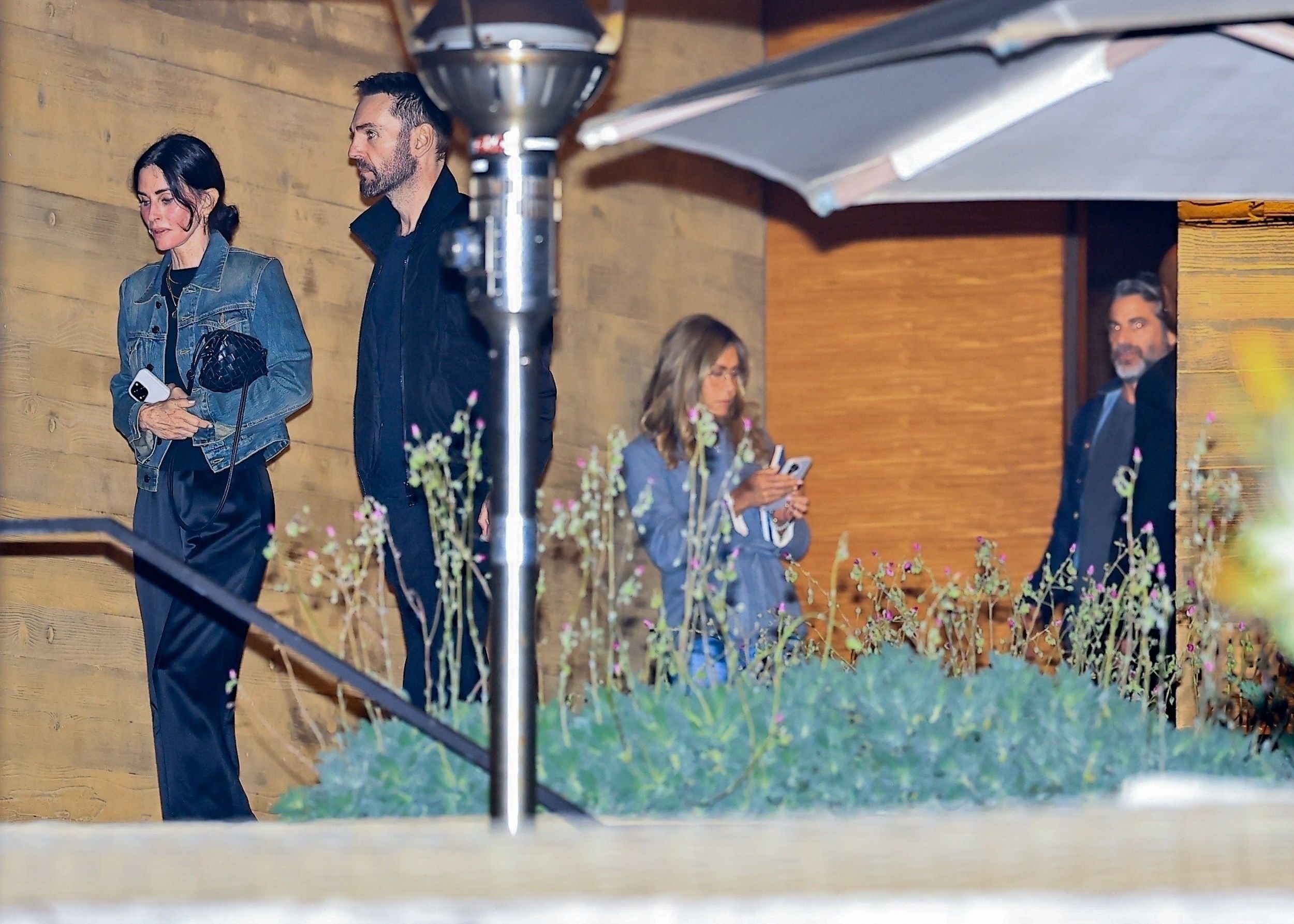 Dua bintang Friends itu berhenti sejenak untuk makan di Nobu, Malibu bersama pasangan masing-masing, Jim Curtis (pasangan Jennifer) dan Johnny McDaid (pasangan Courteney).