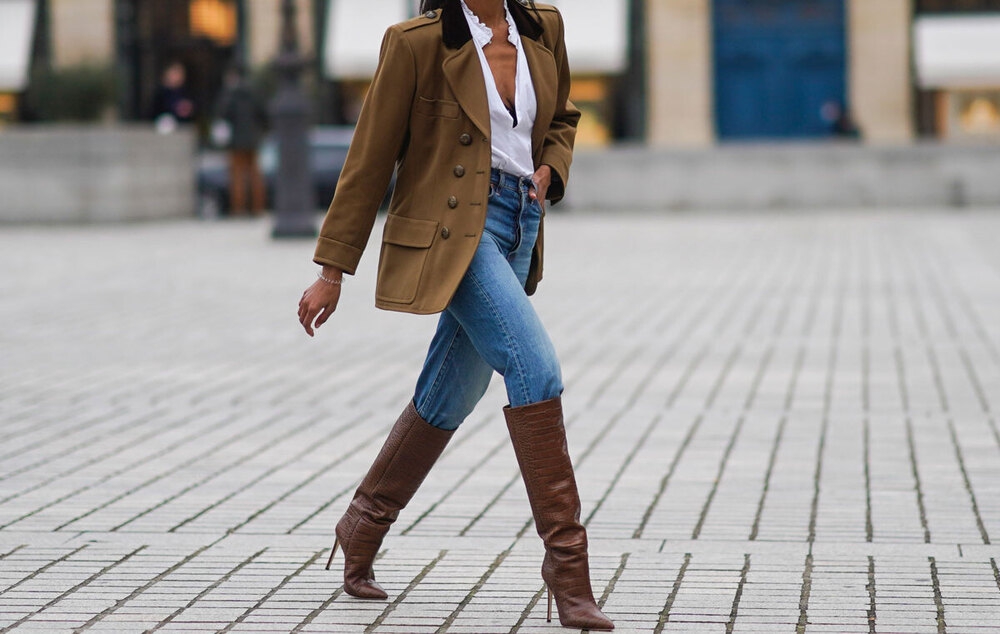 Sepatu boots yang memiliki tinggi hingga paha, adalah pasangan dramatis untuk skinny jeans Anda. Kombinasi ini menciptakan siluet yang tegas sekaligus memikat sehingga cocok dipakai di musim dingin atau acara malam hari. Material suede atau kulit yang sleek mampu memperpanjang kaki sekaligus menambahkan nuansa glamor. Dipadukan dengan oversized sweater atau atasan sederhana, over-the-knee boots menjadikan jeans tampak bak runway look. So, sepatu ini jelas bukan untuk semua orang, melainkan bagi mereka yang berani tampil percaya diri sembari bereksperimen dengan gayanya.