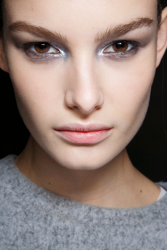 Aksi polesan dengan efek pantulan cahaya bisa menonjolkan mata dan bibir Anda layaknya riasan Rodarte dan Donna Karan.