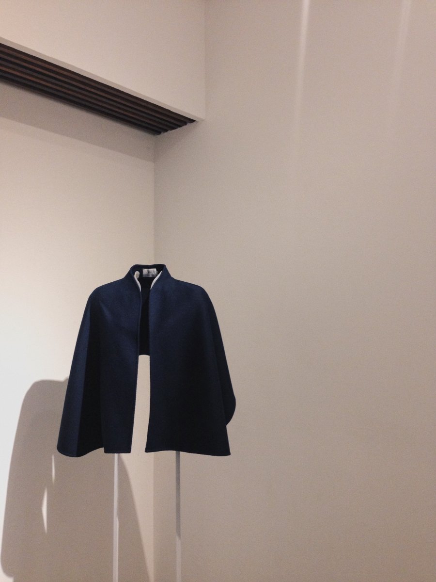 Seperti sebuah mantel berstruktur kokoh berkat inner lining dari silk organza yang ditempatkan pada sisi formation ekshibisi ini.