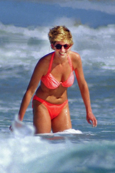 Princess Diana tertawa selagi memberi penghargaan ke tim lifeguards yang mendapat juara pada saat lomba di Central Coast Surf Carnival.