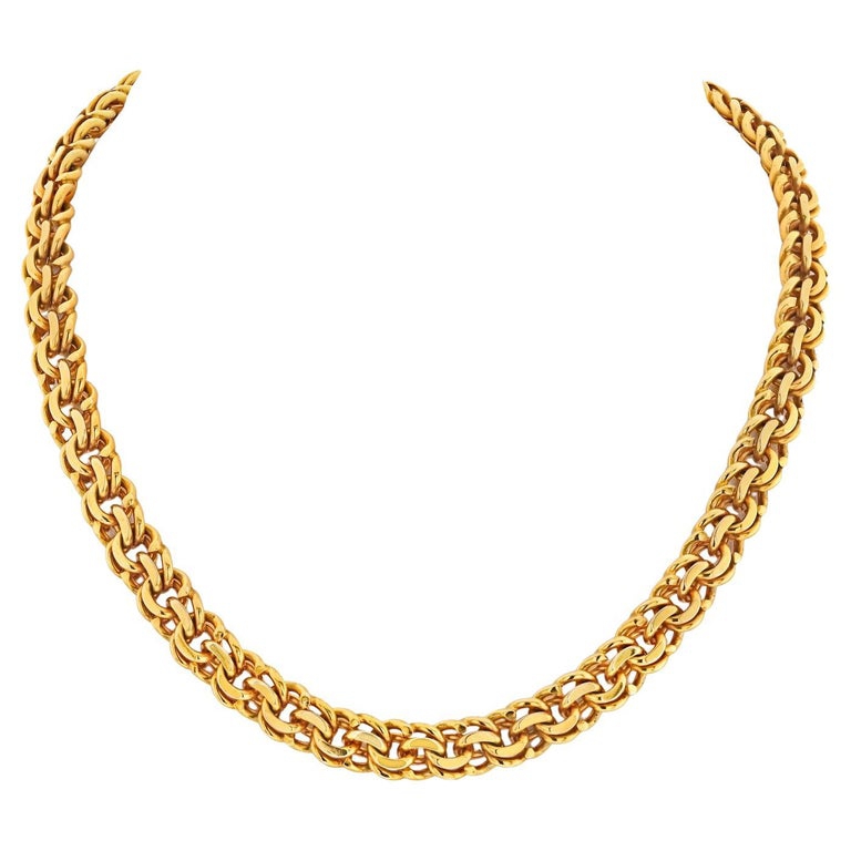 Rantai Byzantine terkenal dengan pola rumit yang membentuk anyaman tiga dimensi, menjadikannya salah satu model kalung emas terkuat dan paling elegan. Struktur detailnya membuat kalung ini hampir mustahil putus dalam penggunaan normal sehari-hari. Selain kokoh, desain Byzantine memberikan kesan mewah dan artistik yang menarik perhatian. Kalung ini dapat dikenakan sendiri tanpa liontin karena tampilannya sudah sangat menonjol. Bagi pencinta perhiasan eksklusif, Byzantine adalah pilihan sempurna yang menggabungkan keindahan seni, kekuatan, serta daya tahan jangka panjang.