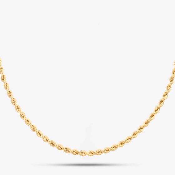 Model rantai rope berbentuk seperti lilitan tali yang saling mengunci, menjadikannya salah satu jenis kalung emas terkuat dan tidak mudah putus. Struktur lilitannya membuat kalung ini tahan terhadap tekanan maupun tarikan, sehingga sangat awet dipakai sehari-hari. Selain itu, kilau emas pada rantai rope terlihat lebih menonjol karena desain berteksturnya mampu memantulkan cahaya dari berbagai sisi. Kalung emas rope bisa dipakai tanpa liontin sekalipun karena desainnya sudah cukup mencolok dan elegan.