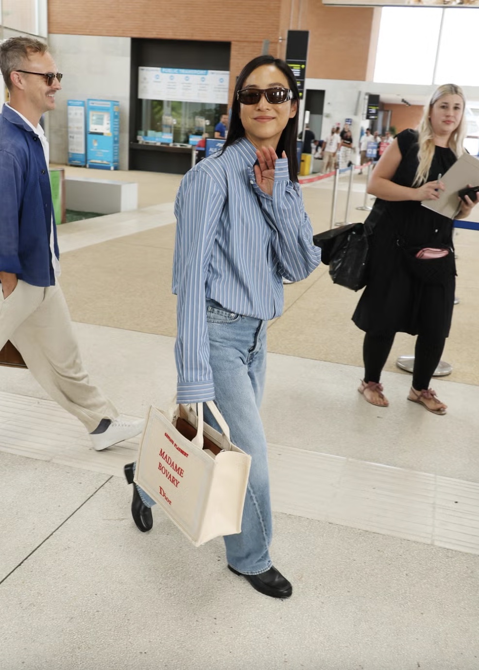 Saat tiba di ajang bergengsi di Kota "Terapung" Italia, bintang Past Lives tersebut tampil dalam koleksi perdana Jonathan Anderson untuk Dior Men. Penampilannya terdiri dari kemeja bergaris yang dipadukan dengan celana jeans twisted-seam dari Toteme, serta sebuah book tote Dior Spring 2026. (Meski varian Dracula sangat populer, ia memilih versi krem dengan cetakan judul novel Madame Bovary karya Gustave Flaubert).