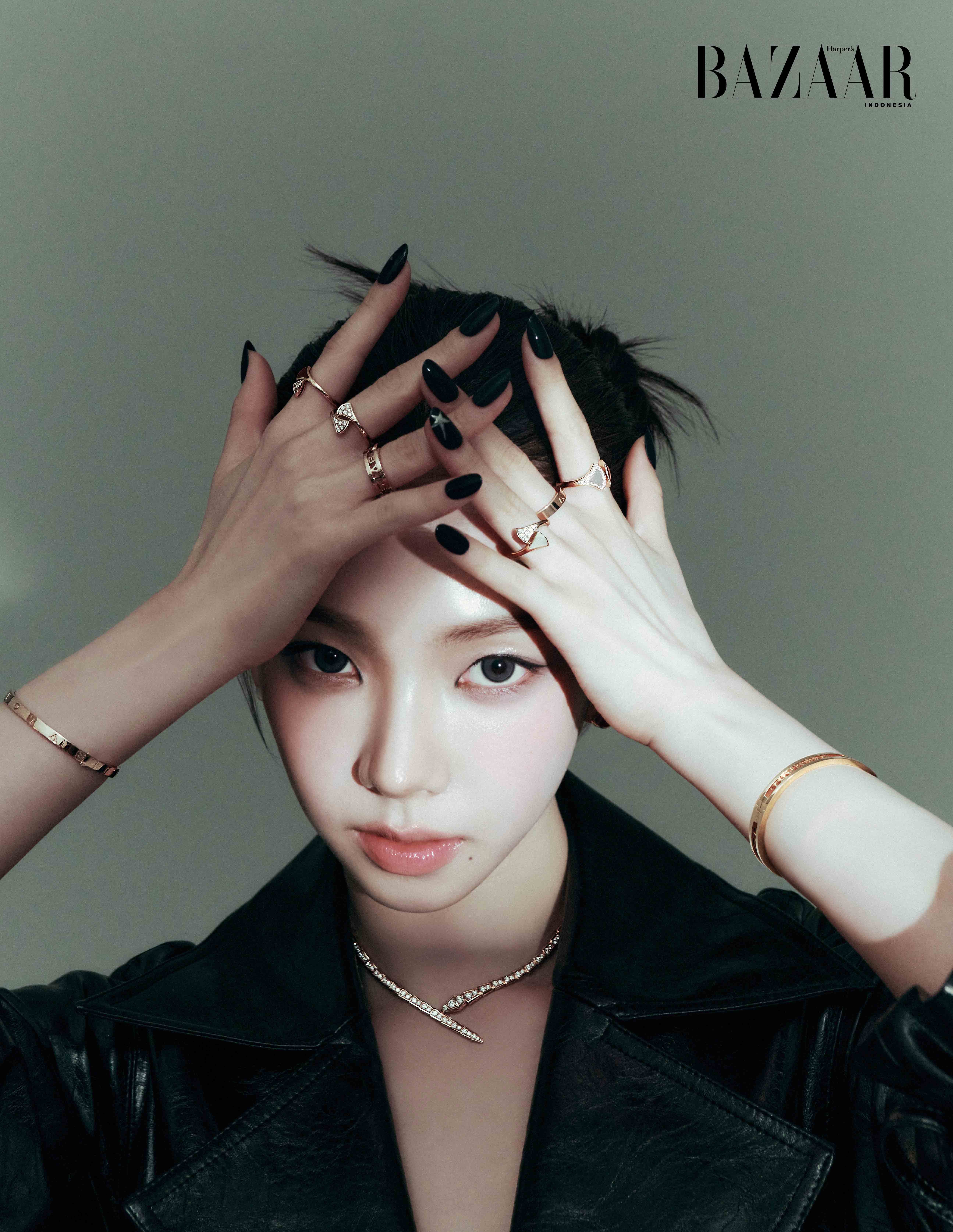 K: Saya seorang Katolik, jadi biasanya hanya memakai cincin rosario (tertawa). Tapi sekarang, saya mulai tertarik pada berbagai jenis perhiasan. Dalam keseharian, saya suka rambut dan makeup yang simpel seperti hari ini, lalu membiarkan perhiasan menjadi sentuhan yang menguatkan tampilan. Saya suka desain- desain detail pada koleksi jam tangan Bvlgari. Ini pertama kalinya saya mencoba jam tangan Serpenti yang melingkar di pergelangan tangan, dan saya langsung jatuh hati.