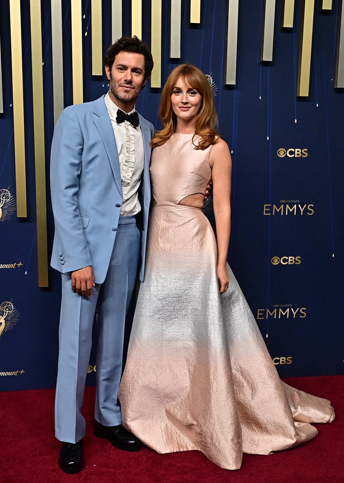 Dalam ajang Emmy Awards, keduanya tampil serasi dalam balutan busana bernuansa pastel dari Prada. Leighton tampil romantis dalam gaun cloqué berwarna blush dengan detail gradient biru keperakan yang kemudian ia padukan dengan sepatu hak tinggi blush. Sementara itu, Adam tampil rapi dalam tuksedo biru pucat yang dipadukan dengan kemeja poplin putih gading beraksen ploi pada bagian plaket, dilengkapi dasi kupu-kupu grosgrain hitam serta sepatu kulit hitam mengilap dengan model lace-up.