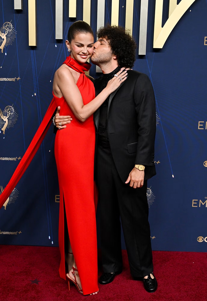 Di karpet merah Emmy, keduanya tampak penuh senyum. Rita memilih gaun bergaya boho dalam nuansa kuning lembut khas musim ini, sementara sang aktor sekaligus pembuat film tersebut tampil rapi dalam tuksedo gading dengan kilau yang lembut.