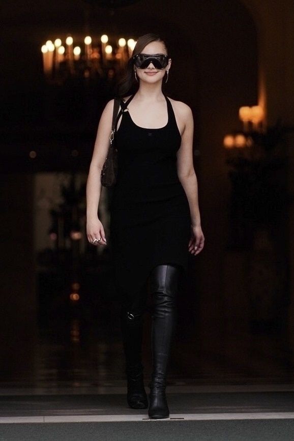 Untuk penampilan pertamanya, aktris berusia 22 tahun itu mengenakan gaya serba hitam yang lebih menyerupai agen rahasia dibandingkan protagonis drama remaja. Ia tampil dengan scoop-neck mini dress hitam pekat dari Courrèges yang dipadukan dengan sepatu boots kulit setinggi paha, pilihan alas kaki yang mustahil dipakai Belly. Penampilannya kemudian dilengkapi dengan kacamata hitam oversize dari Phoebe Philo, anting berbentuk belati dari Givenchy, serta tas gunmetal berbahan suede cokelat dari Hammitt.