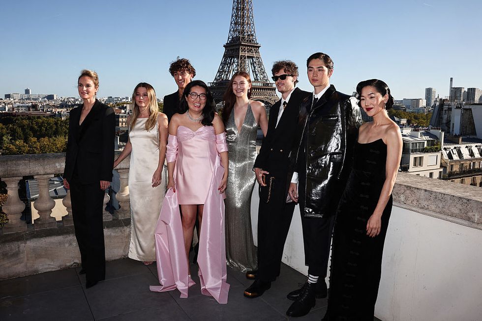 Kemudian, Lola bergabung dengan rekan-rekan sesama pemain untuk sesi pemotretan di depan Menara Eiffel, di mana ia berganti mengenakan gaun perak memukau dari KaufmanFranco. Gaun sheath yang mencuri perhatian itu menampilkan garis leher halter yang rendah, detail tali bersilangan di bagian punggung, serta rok panjang yang menutupi sepatunya. Untuk sentuhan glamor tambahan, ia melengkapi penampilannya dengan sepasang anting liontin berlian.