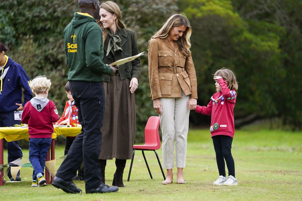 Keduanya bertemu dengan Chief Scout Dwayne Fields dan anak-anak dari program Squirrels Scouts di halaman Frogmore Cottage. Mereka ikut serta dalam kegiatan kerajinan tangan dan permainan luar ruangan sambil berbincang dengan anak-anak sepanjang hari. Untuk kesempatan ini, Kate dan Melania tampil serasi bak pencinta alam dalam balutan busana bernuansa warna bumi.