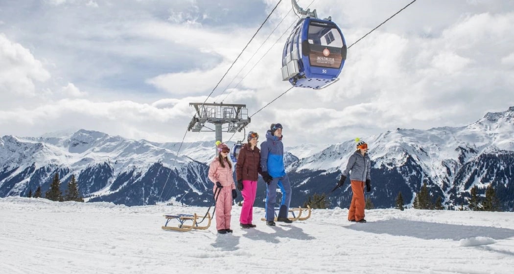Klosters Madrisa dikenal sebagai area ski ramah keluarga dengan fasilitas yang dirancang khusus untuk anak-anak dan pemula. Jalurnya tidak terlalu menantang, sehingga aman bagi mereka yang baru belajar ski. Salah satu daya tarik utamanya adalah taman bermain salju yang interaktif dan penuh keseruan untuk anak-anak. Selain ski, area ini juga menawarkan aktivitas lain seperti sledging dan snowboarding ringan. Suasana hangat khas desa Alpen semakin membuat pengalaman berlibur di Madrisa penuh keakraban, cocok untuk keluarga yang ingin liburan musim dingin menyenangkan.