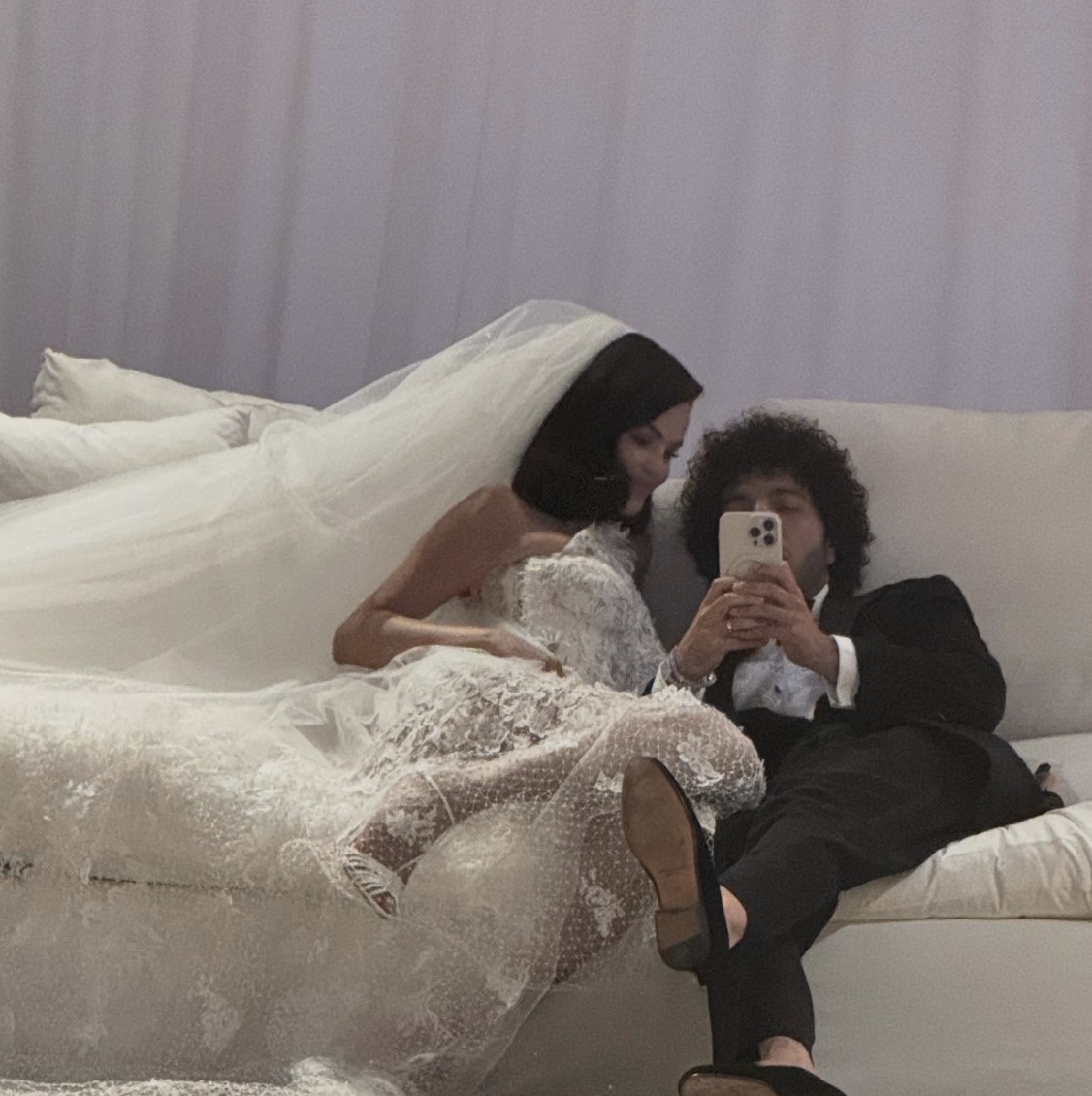 “Aku menikahi seorang putri Disney di dunia nyata,” tulis Benny Blanco di Instagram sehari setelah pernikahannya dengan Selena Gomez. Dalam unggahan tersebtu yang menyertakan selfie manis, pasangan itu tampak sedang bersantai di tempat tidur, sang pengantin terlihat mengenakan gaun putih berenda, berbeda dari gaun halter Ralph Lauren yang ia unggah di Instagram-nya sehari sebelumnya.